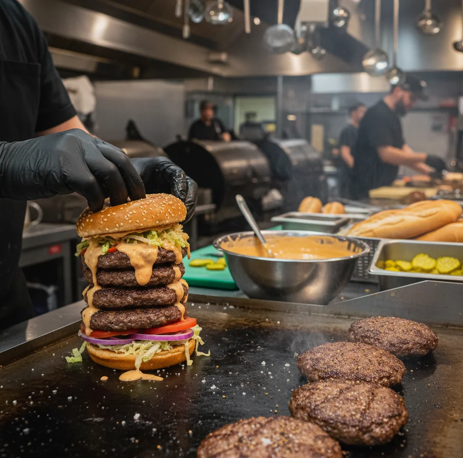 Heat a skillet or griddle over medium-high until very hot. Place a beef ball down and smash firmly with a spatula until about 1 cm thick. Season with salt and pepper. Cook for ~2 minutes until the edges crisp, then flip. Add cheese to two of the patties and cook another 1–2 minutes. You should end up with 2 cheesy patties and 2 plain ones.