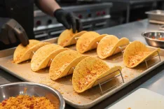 • Lightly brush store-bought soft corn tortilla with oil, press into Doritos crumbs on both sides, and bake at 200°C (400°F) 6–8 min flipping once, or shallow-fry quickly until crisp. Shape into taco shells while warm using oven rack or taco form.